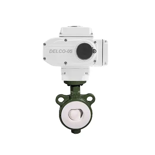 DELCO DK56-DC Electric Fluorine Lined Wafer Butterfly Valve for Universal Chemical Resistance