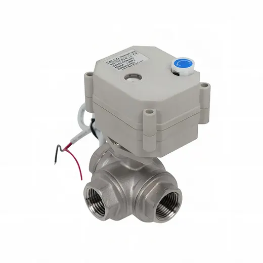 Casa Casa / Produto / Válvula acionada eletricamente / Válvula elétrica em miniatura / Válvula de esfera motorizada de aço inoxidável de 3 vias da série DK60-ST para controle de fluido industrial