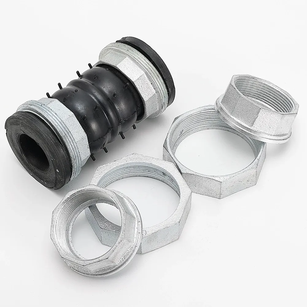 DELCO Threaded Rubber Flexible Joint is a rubber expansion joint for threaded piping. It reduces vibration and noise, and helps relieve pipe stress from thermal movement and minor misalignment. Union-type threaded ends enable fast installation and replacement. Rubber compound, thread standard/size, and pressure rating can be supplied to suit water, HVAC, and general industrial service.